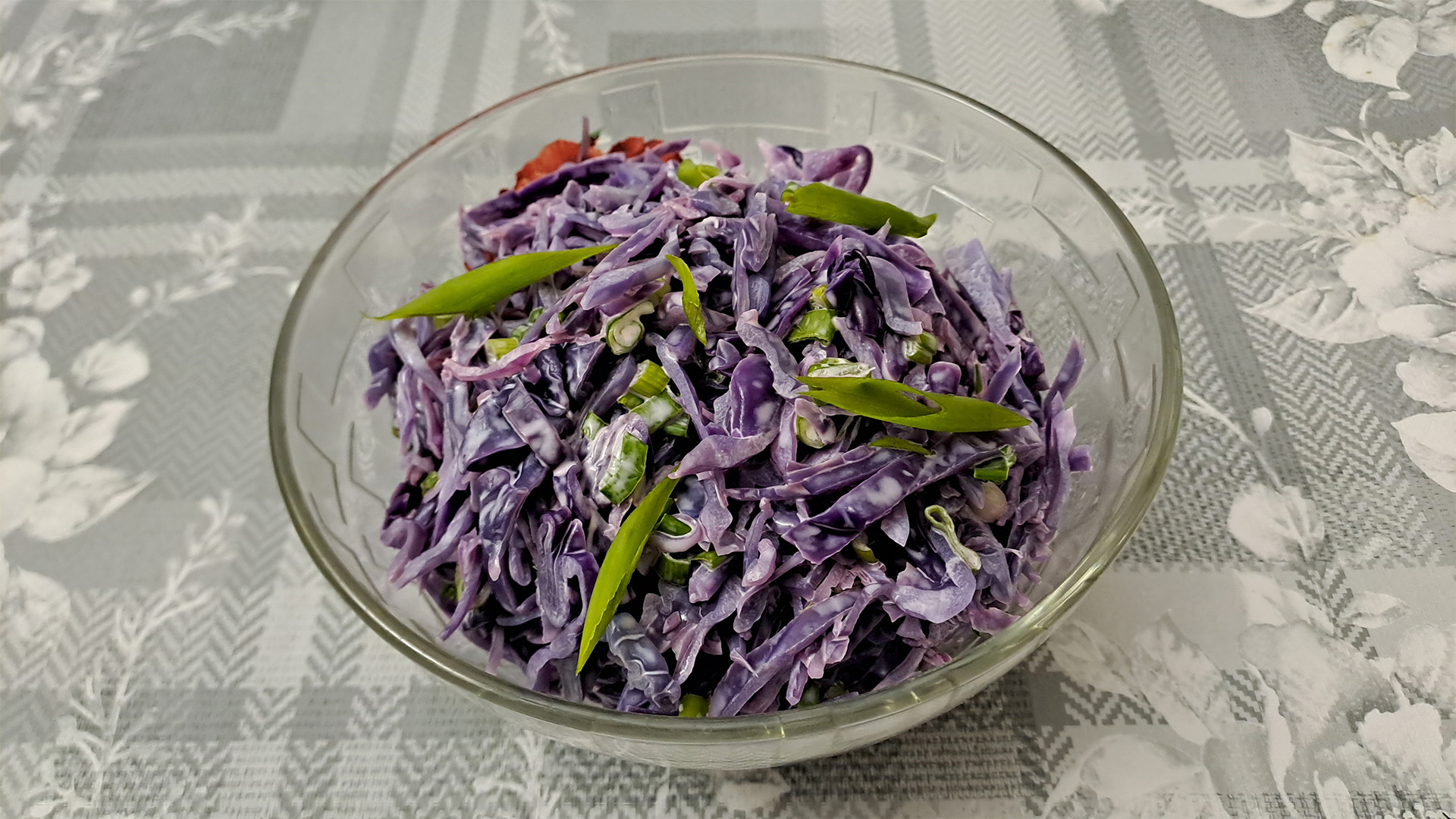 Очень простой низкокалорийный (70 ккал на 100 г), полезный и вкусный овощной салат хорошо дополнит мясные или куриные блюда, а также подойдет для легкого ужина. Ингредиенты: краснокочанная капуста, зеленый лук, сахар, майонез …