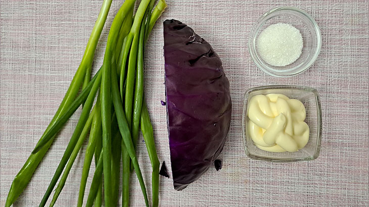 Ингредиенты салата из краснокочанной капусты и зеленого лука