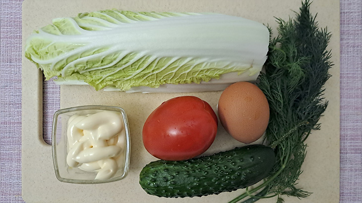Ингредиенты салата из пекинской капусты с огурцом и помидором