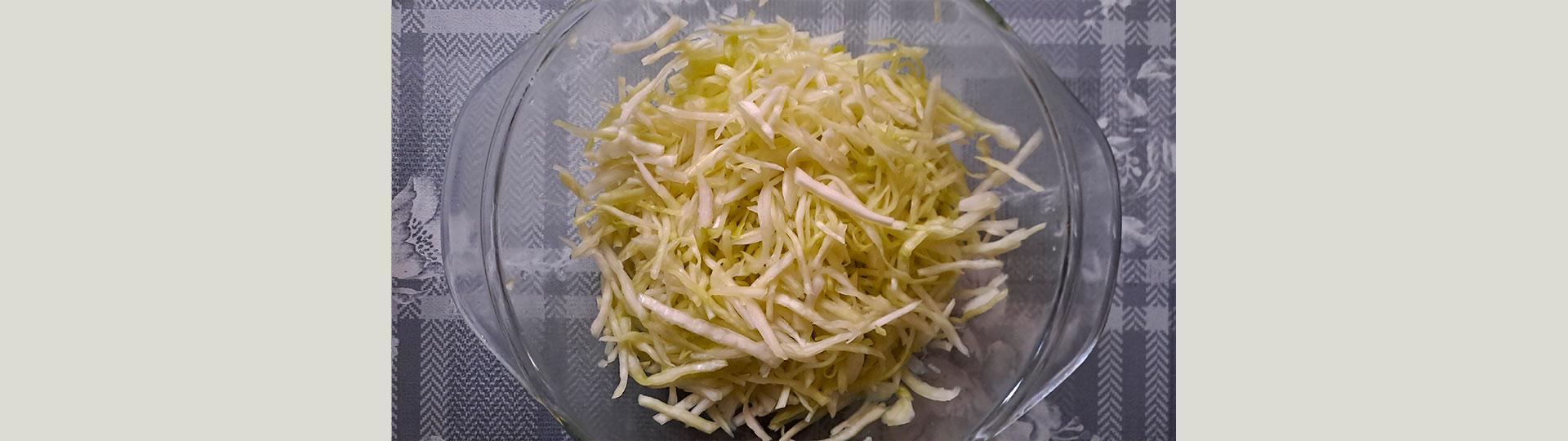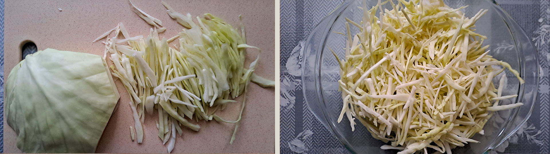 Белокочанную капусту нарезаем соломкой и выкладываем в миску