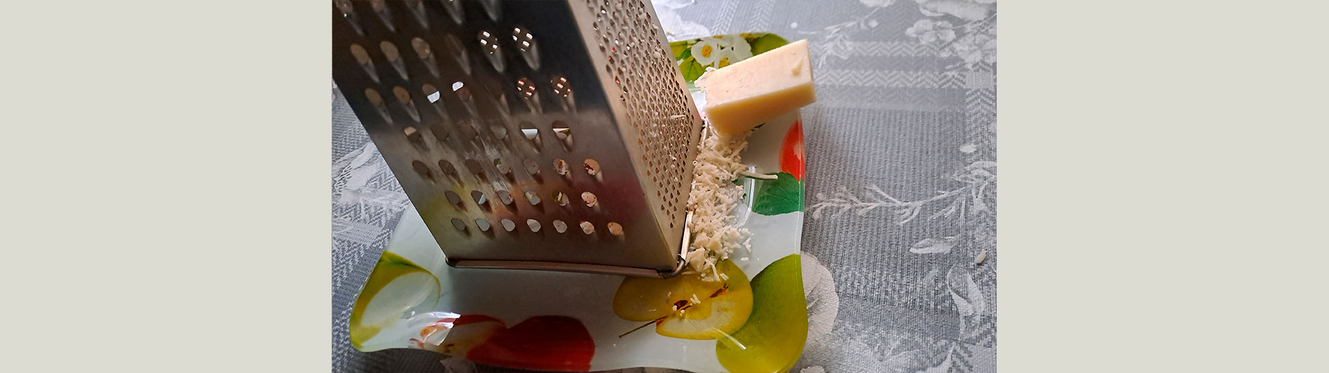 Шаг 8. Голландский сыр (50 г) натираем на мелкой терке.